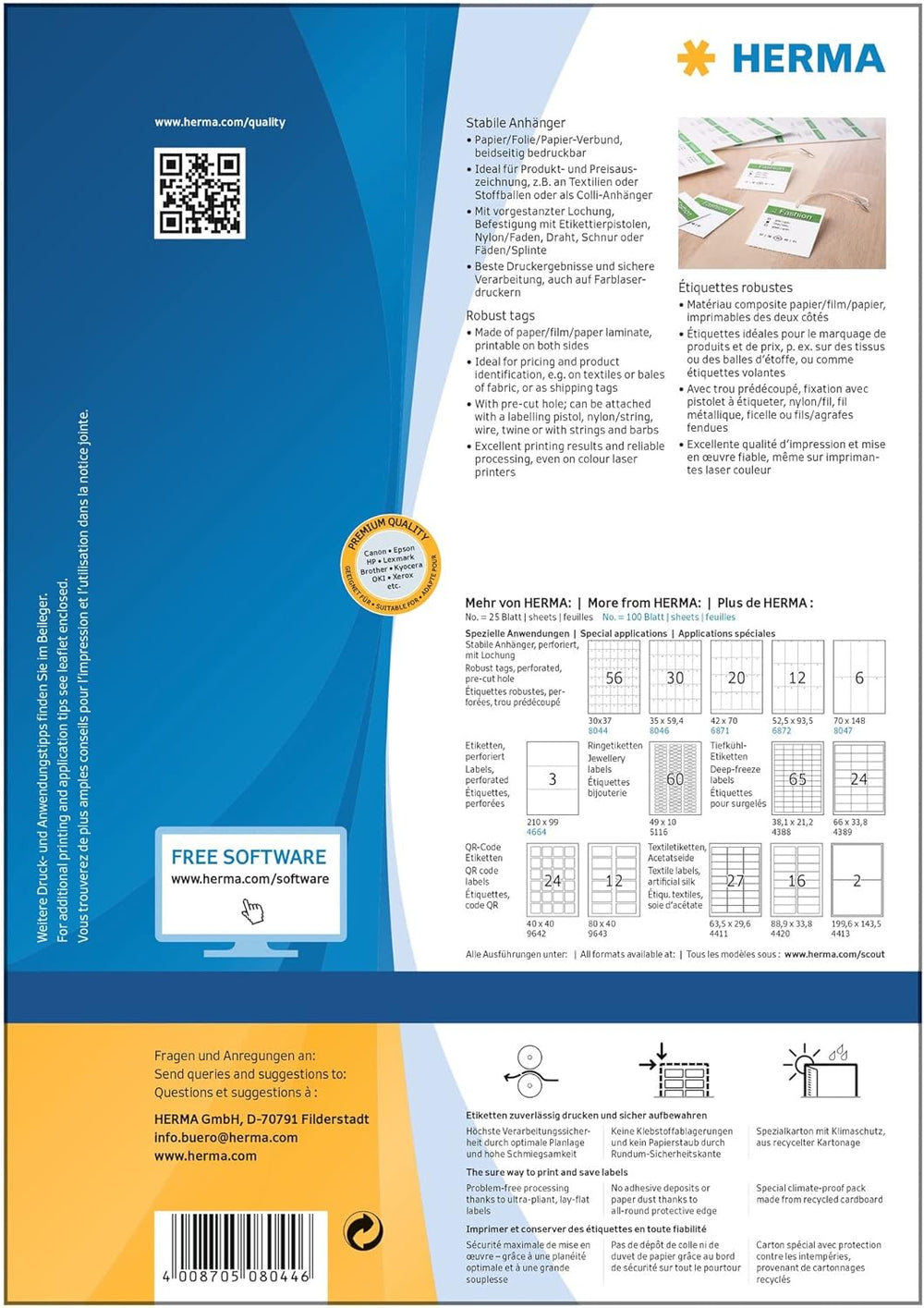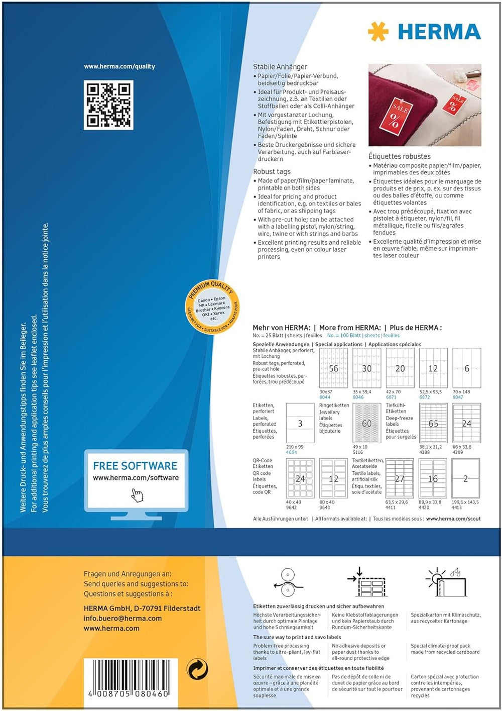 HERMA 8044 Stabile Anhänger perforiert, 100 Blatt, 30 x 37 mm, 56 Stück pro A4 Bogen, 5600 Preisanhä