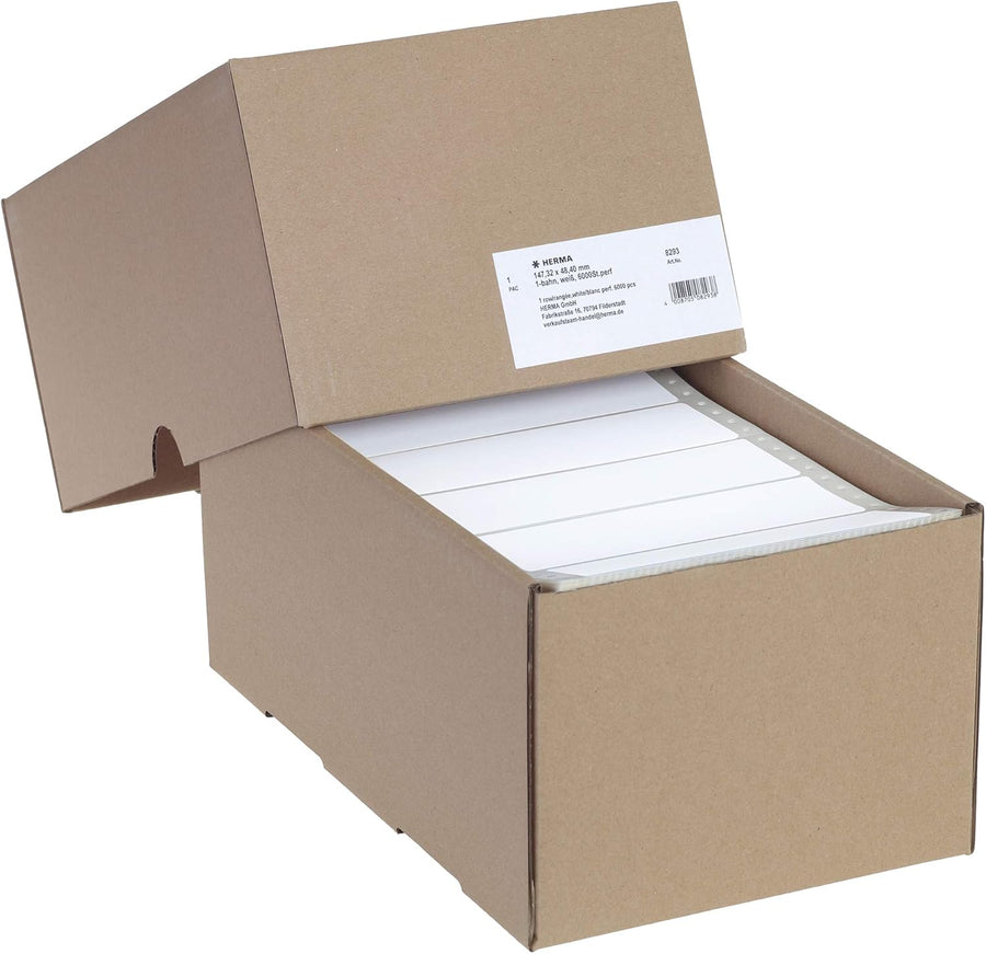 HERMA 8293 Computeretiketten endlos perforiert, 147,32 x 48,4 mm, 1-bahnig, 6000 Aufkleber, selbstkl