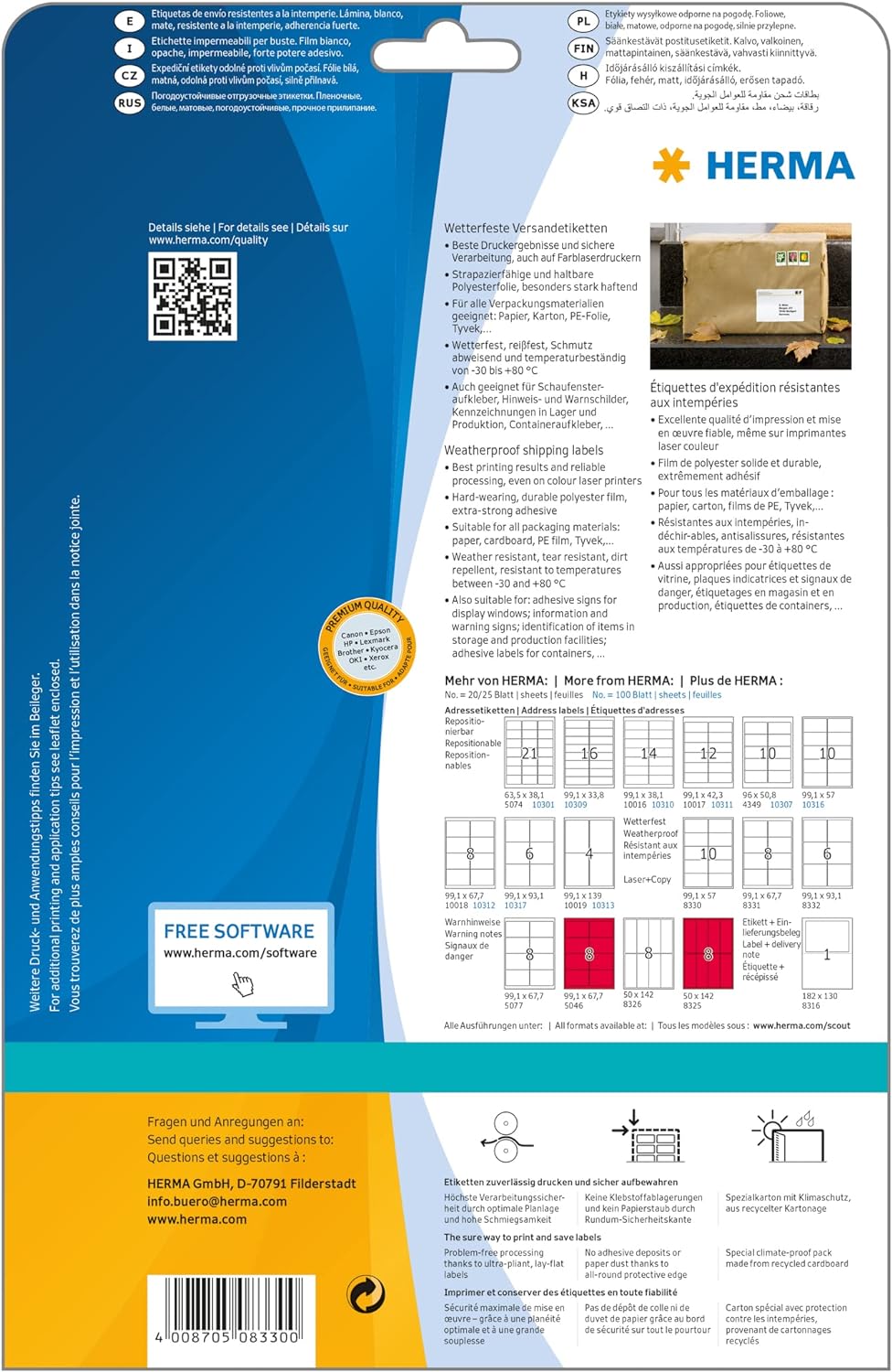 HERMA 8331 Wetterfeste Versandetiketten, 25 Blatt, 99,1 x 67,7 mm, 8 Stück pro A4 Bogen, 200 Aufkleb