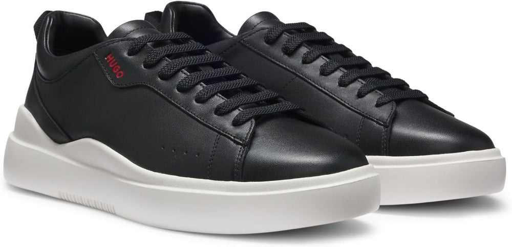 HUGO Herren Blake Tenn Sneakers aus Glattleder mit kontrastfarbenem Branding Grösse 39 EU Schwarz, 3