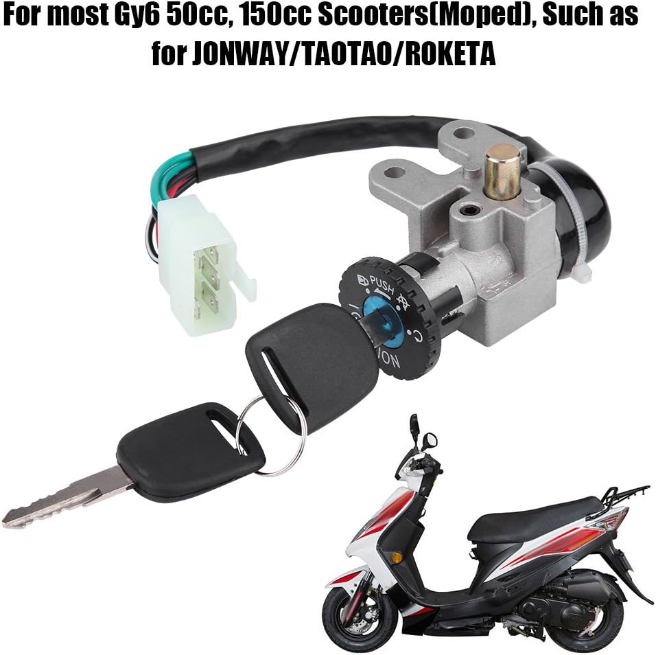 KIMISS1 Set 5Pin Stecker 2 Schlüssel Zündschloss Key Lock Tankdeckel Set für Gy6 50cc, 150cc Motorro