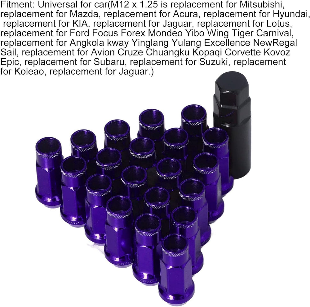 KIMISS Radmuttern, Universal 20 Stück M12x1,25 Metall Radmuttern Universal Autozubehör(Lila), Lila