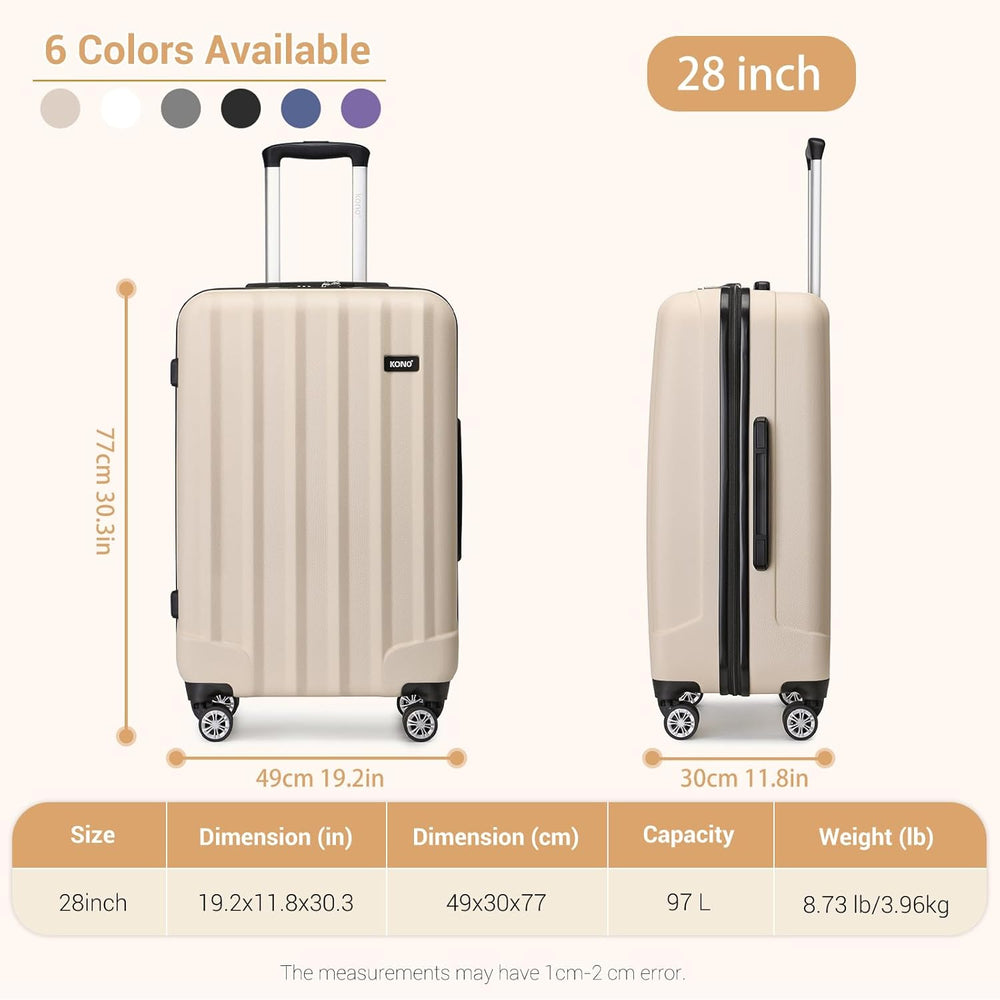 KONO Trolley Koffer Mittelgross Leicht Hartschalenkoffer Reisekoffer mit 4 Rollen und TSA Schloss, 6
