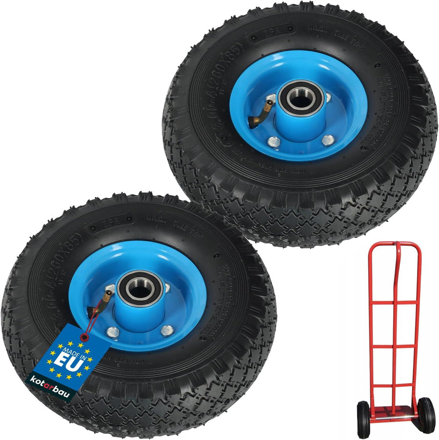 KOTARBAU® 2er Set Transportwagenrad 260 x 85mm 3.00-4 Verstärkt 4PR Reifen Komplettrad mit Achse