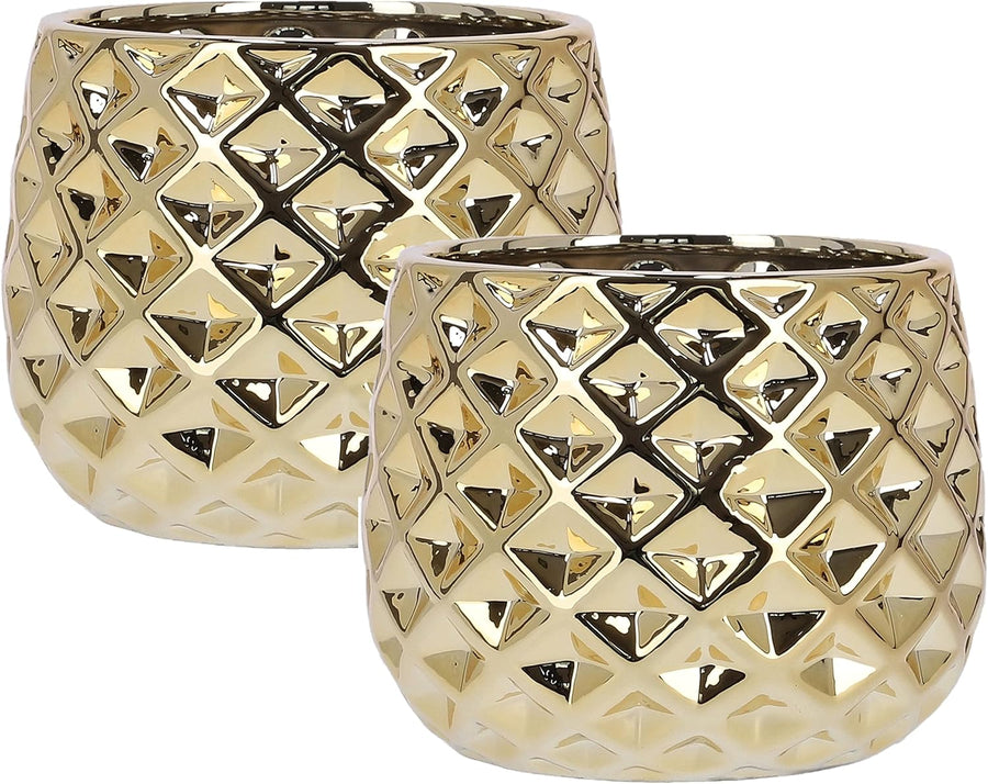 KOTARBAU® 2er Set Keramik-Blumentopf Übertopf Ø 13 cm für Blumen Pflanzen Gold