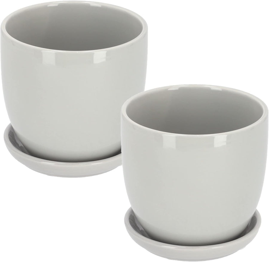 KOTARBAU® 2er Set Keramik Blumentopf Übertopf für Blumen Pflanzen ⌀ 13 cm mit Tropfschale Grau, Grau