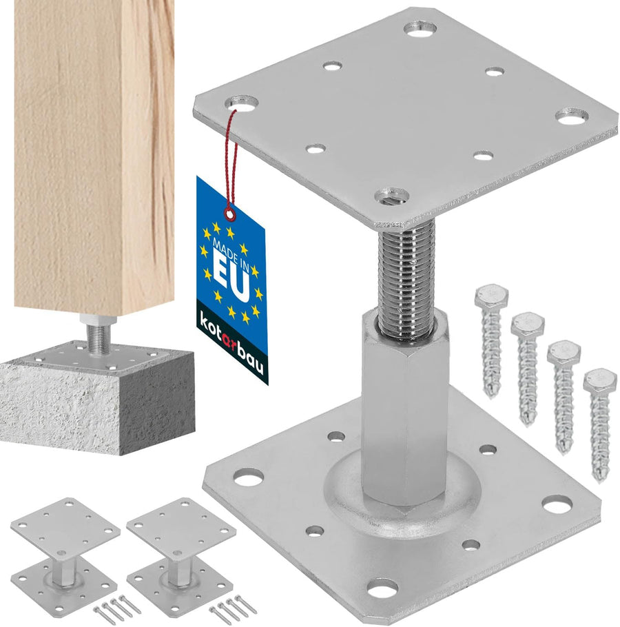KOTARBAU® 2er Set Pfostenträger 80 x 80 mm Höhenverstelbar 90 – 150 mm Pfostenschuh Galvanisch Verzi