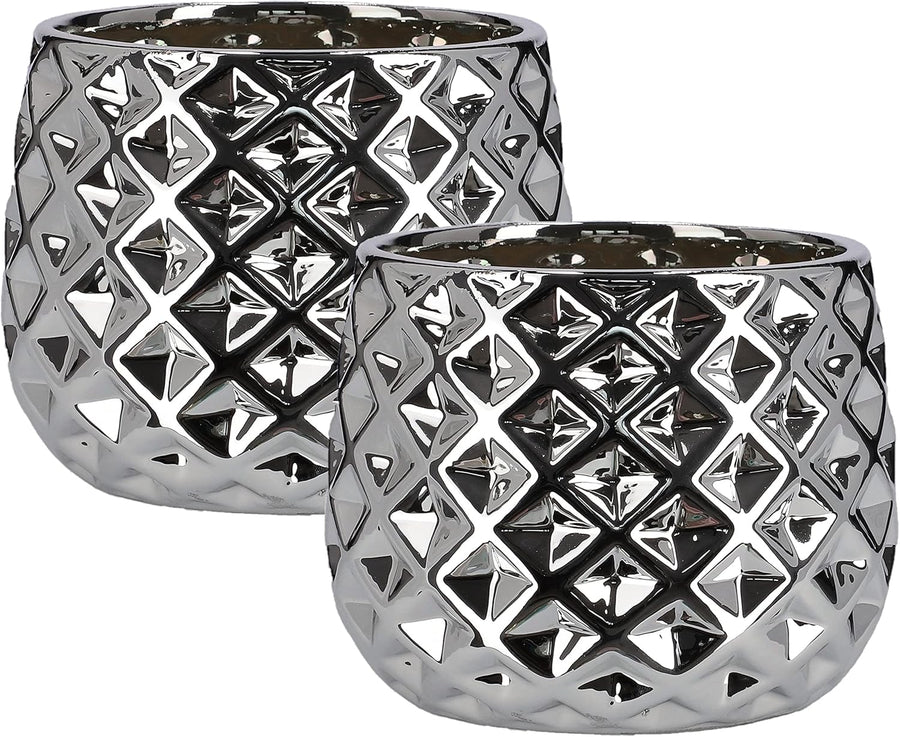KOTARBAU® 2er Set Keramik-Blumentopf Übertopf Ø 13 cm für Blumen Pflanzen Silber, Silber