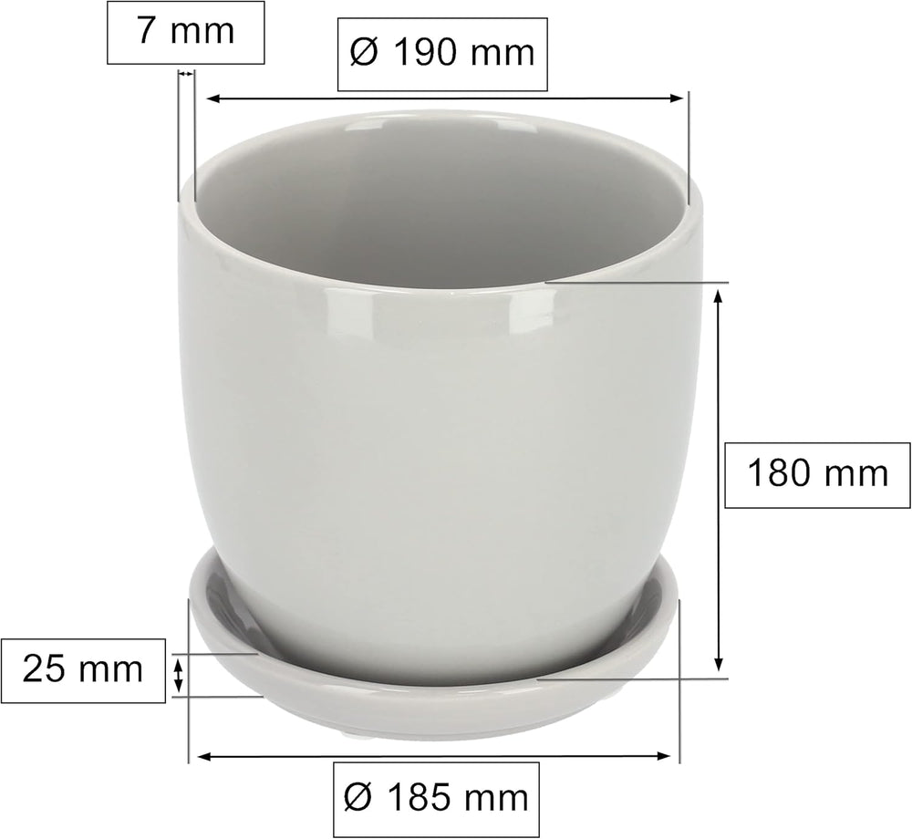 KOTARBAU® 2er Set Keramik Blumentopf Übertopf für Blumen Pflanzen ⌀ 20 cm mit Tropfschale Grau ⌀ 20