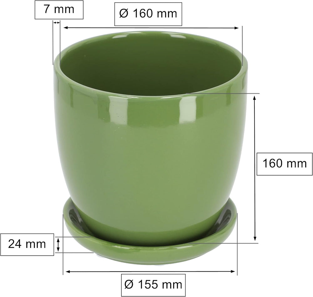 KOTARBAU® 2er Set Keramik Blumentopf Übertopf für Blumen Pflanzen ⌀ 17 cm mit Tropfschale Grün ⌀ 17