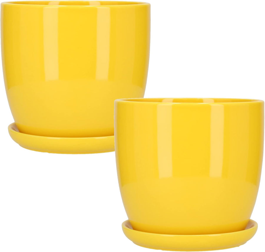 KOTARBAU® 2er Set Keramik Blumentopf Übertopf für Blumen Pflanzen ⌀ 13 cm mit Tropfschale Gelb