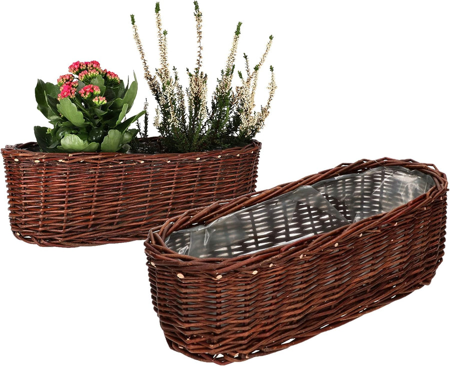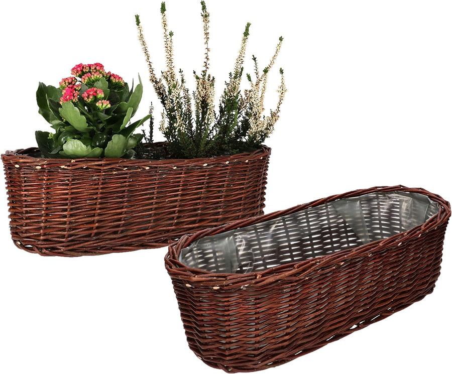 KOTARBAU® 2er Set Übertopf aus Weide Flechtwaren Blumentopf Oval für Blumen Pflanzen Naturkorb 50 cm