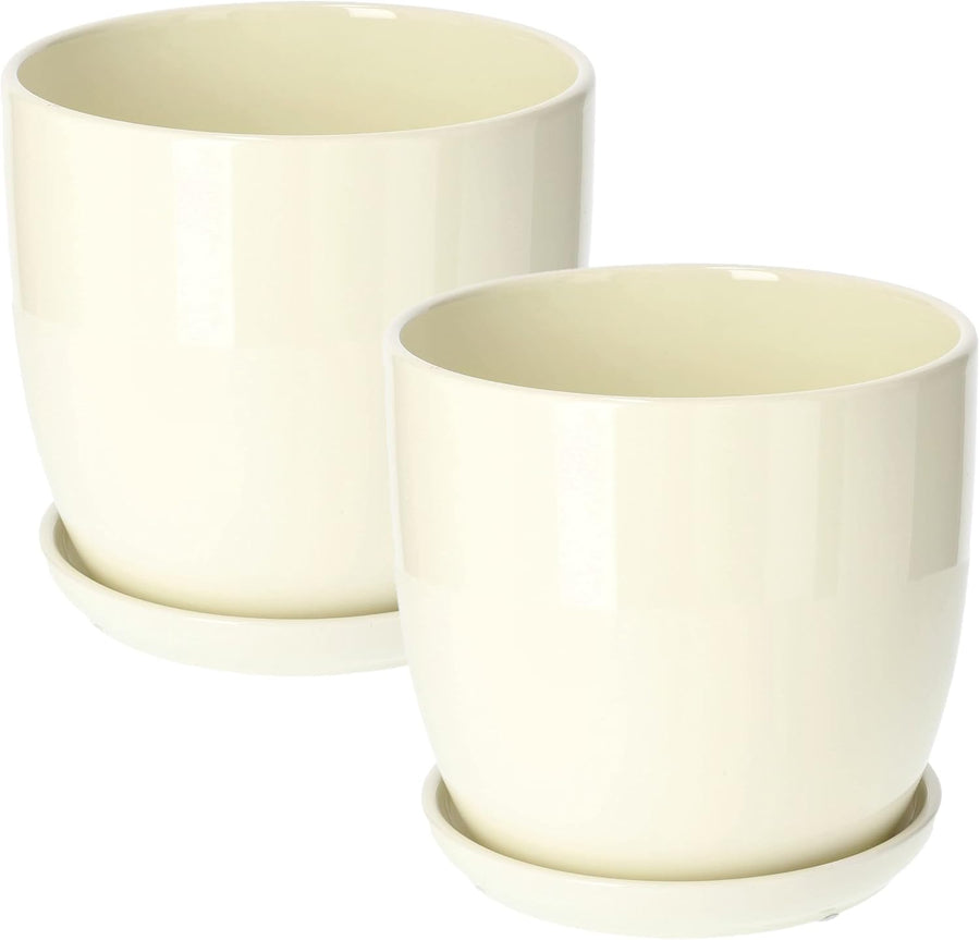 KOTARBAU® 2er Set Keramik-Blumentopf Übertopf für Blumen Pflanzen ⌀ 13 cm ⌀ 15 cm mit Tropfschale
