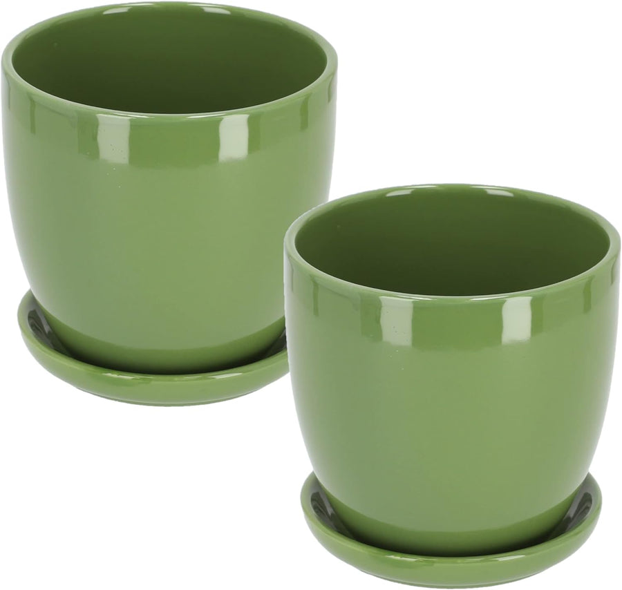 KOTARBAU® 2er Set Keramik Blumentopf Übertopf für Blumen Pflanzen ⌀ 20 cm mit Tropfschale Grün ⌀ 20