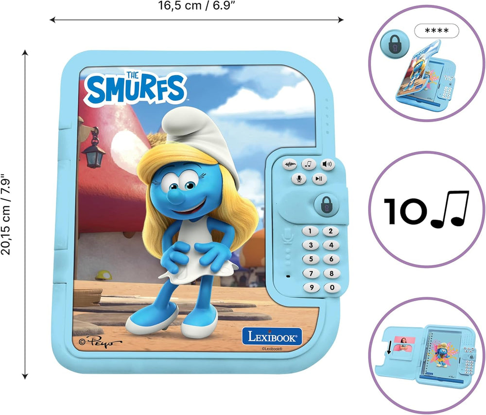 Lexibook, Die Schlümpfe, Schlümpfe elektronisches Tagebuch mit Stift und Notizbuch, interaktiv, Pass