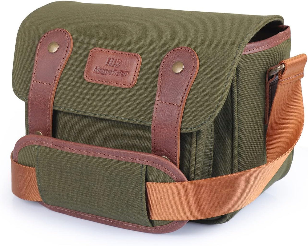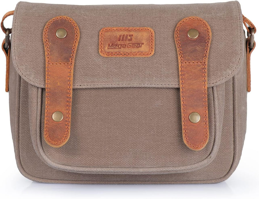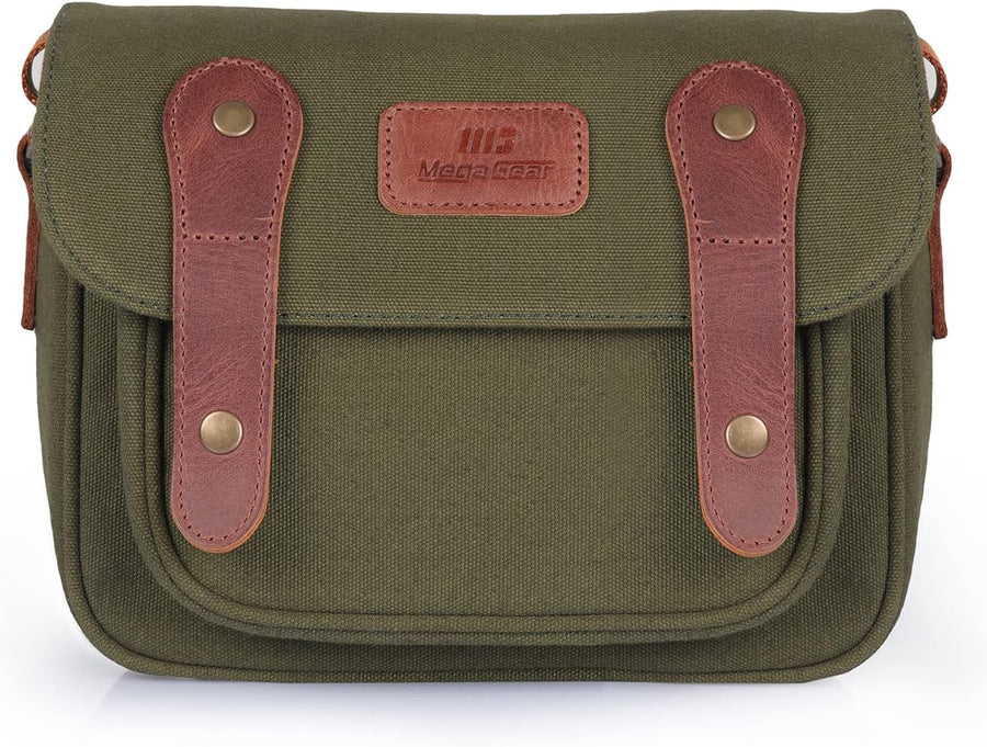 MegaGear Pebble Kameratasche - Kuriertasche aus echtem Leder für Spiegellose, Sofortbild- und DSLR K