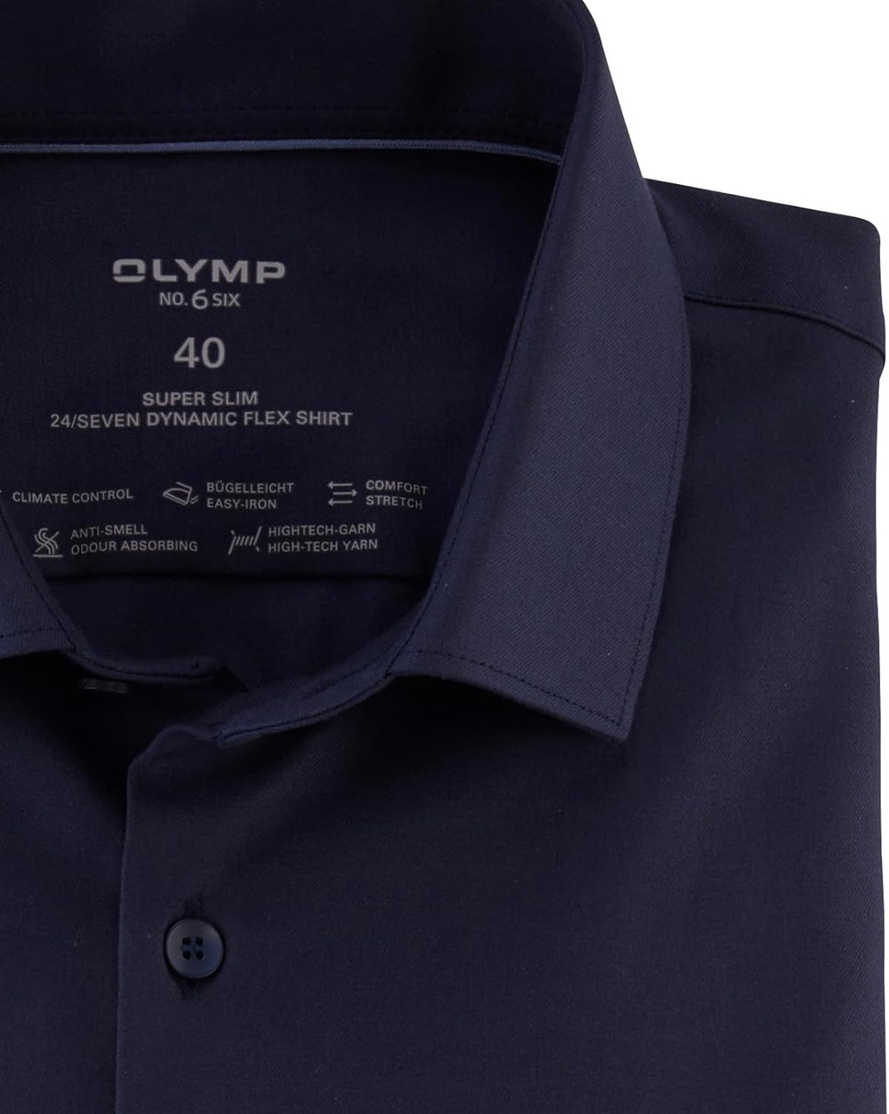 OLYMP Herren Businesshemd Langarm No. Six 24/Seven,super Slim,Kent-Kragen 36 Marine 18, 36 Marine 18