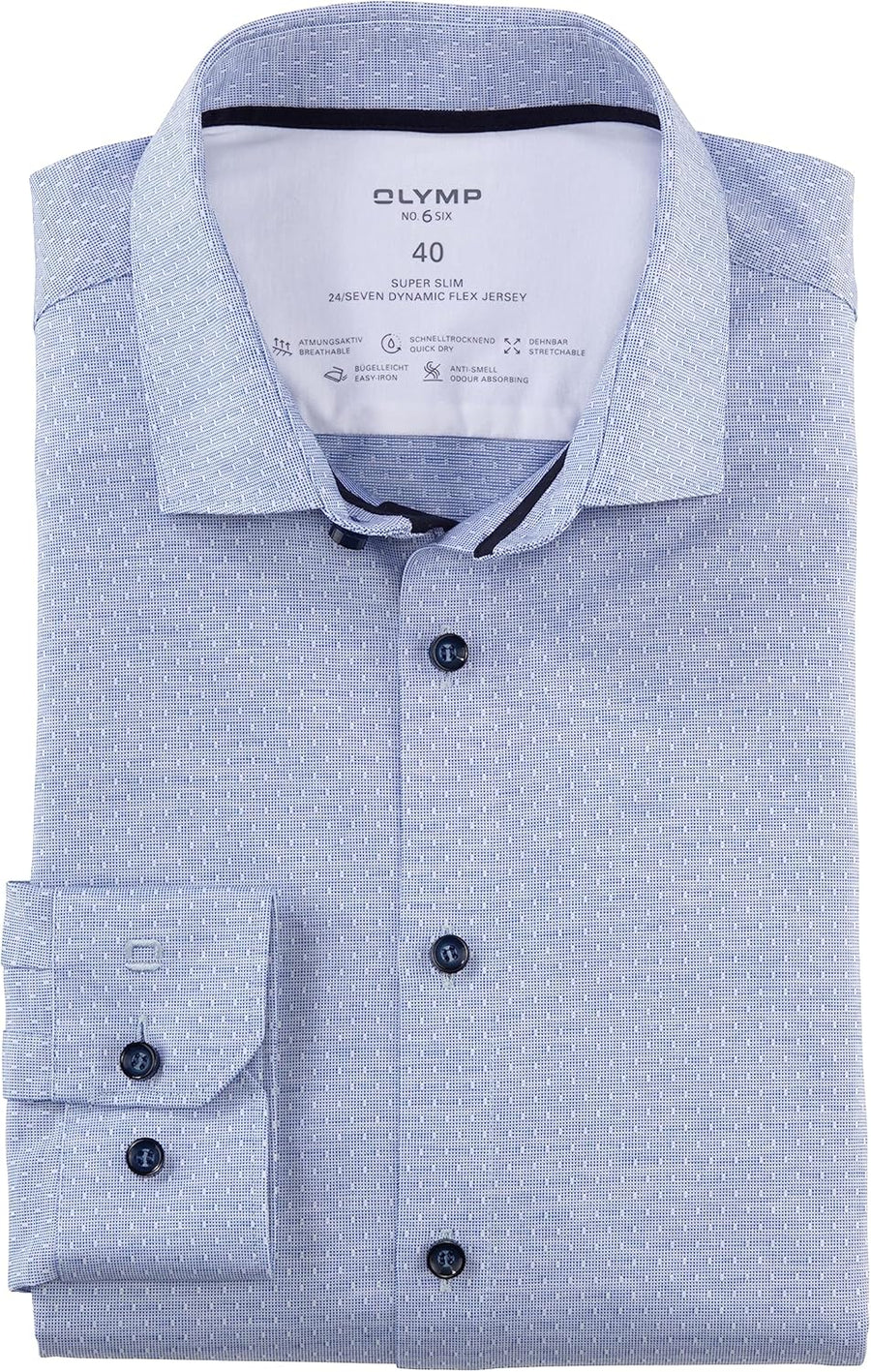 OLYMP Herren Businesshemd Langarm No. Six 24/Seven,Rotationsdruck,super Slim,Modern Kent 44 Bleu 11,