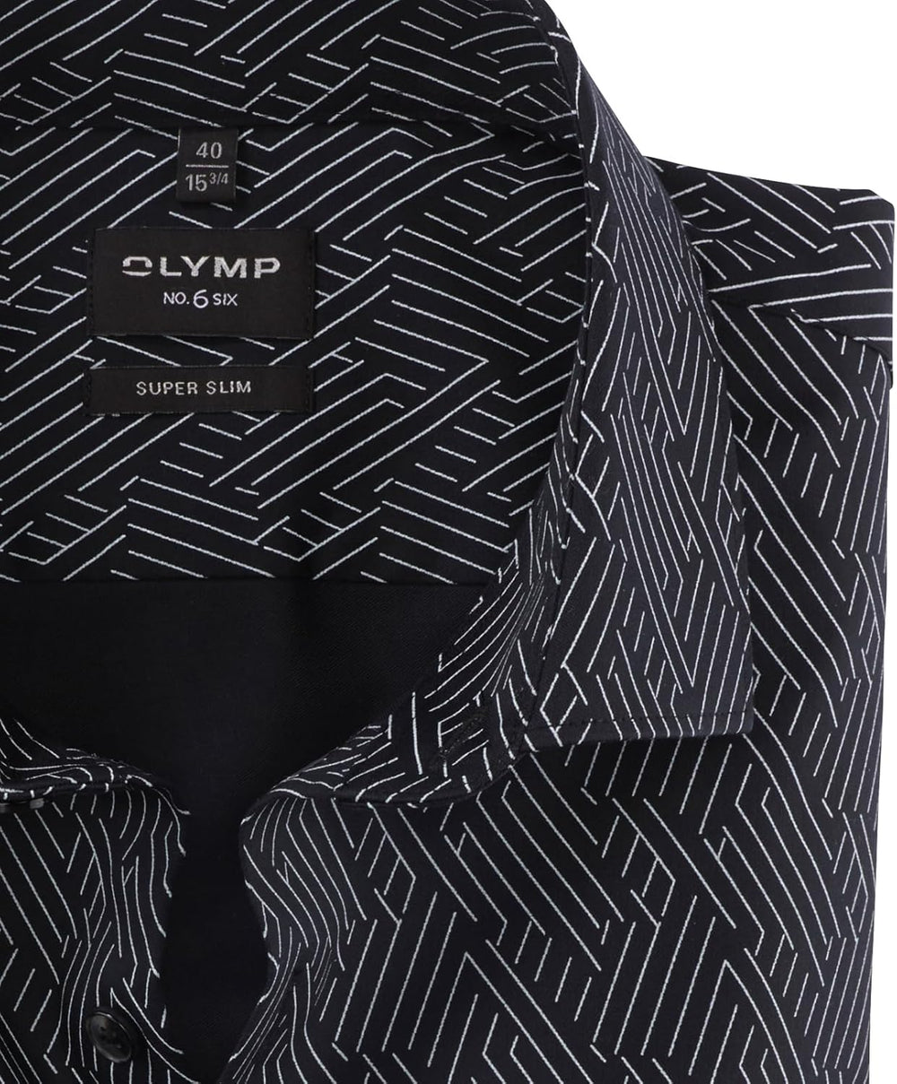OLYMP Herren Businesshemd Langarm No. Six,Rotationsdruck,super Slim,Modern Kent 40 Schwarz 68, 40 Sc