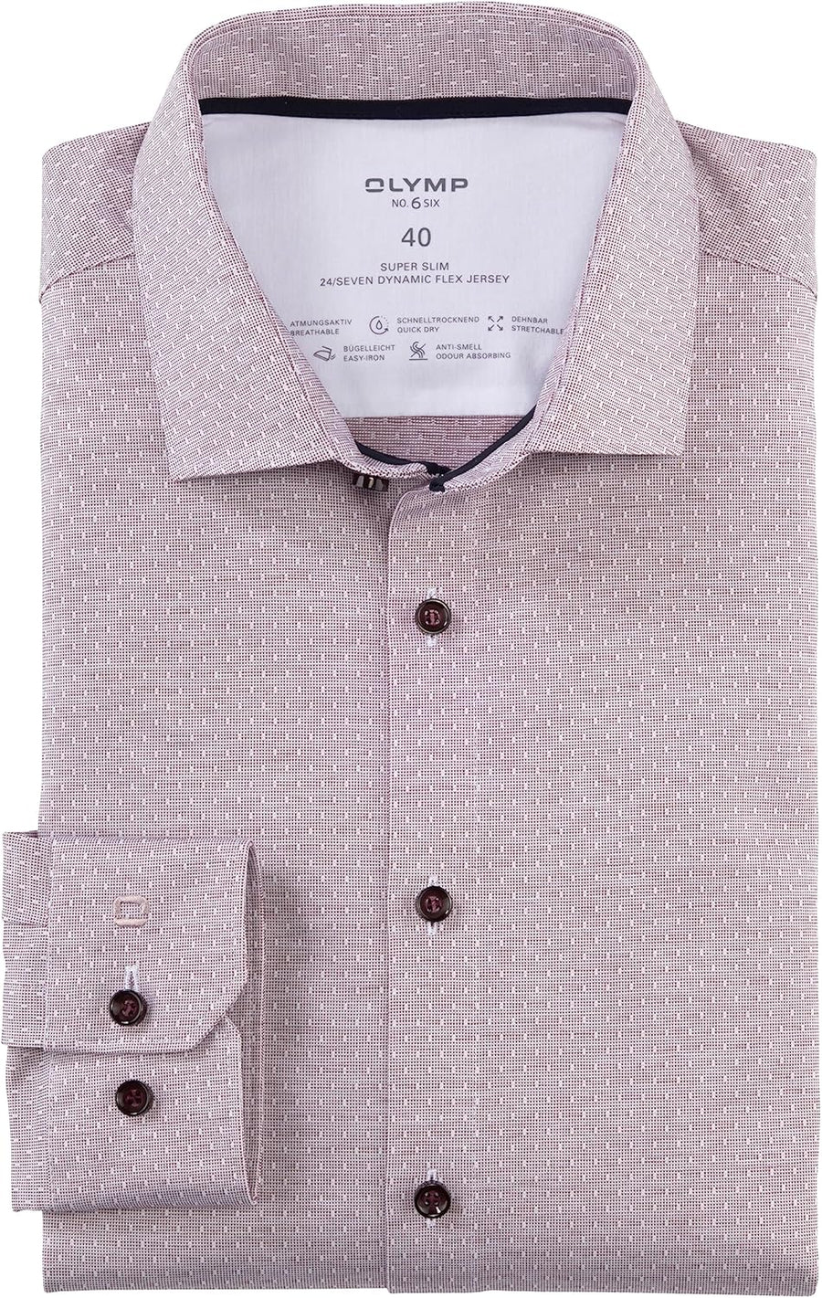 OLYMP Herren Businesshemd Langarm No. Six 24/Seven,Twill,super Slim,Modern Kent 36 Dunkelrot 39, 36