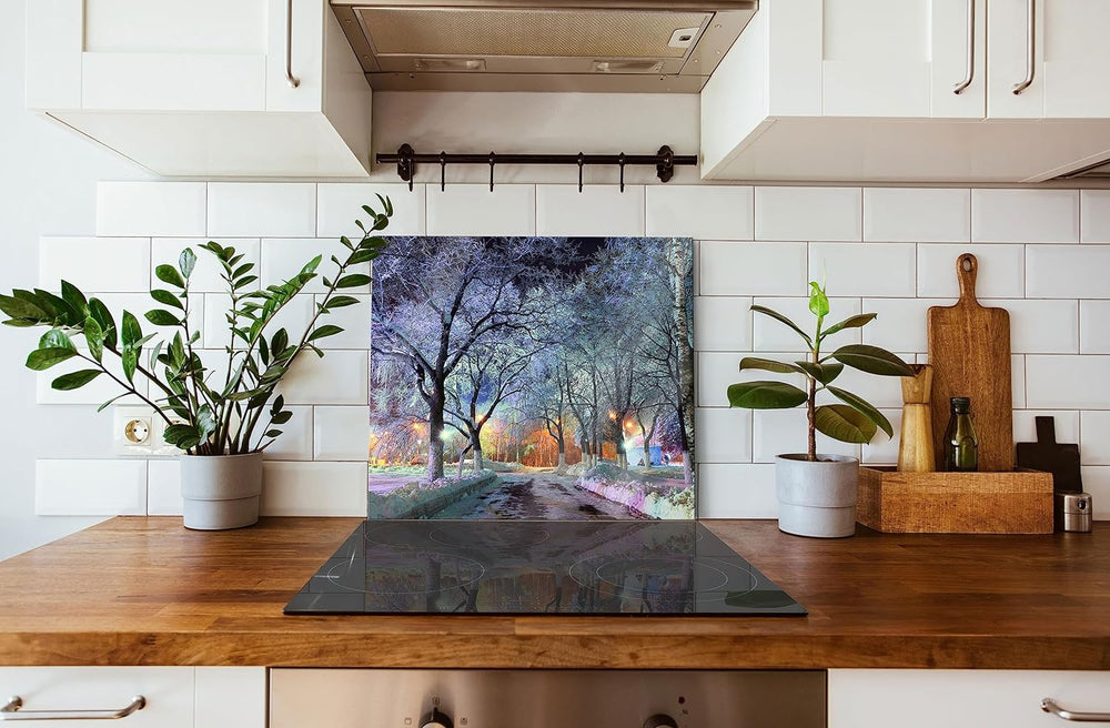 Baumallee im Winter Herdabdeckplatte & Spritzschutz aus Echtglas | Für Herd-Kochfelder | 60x52 cm