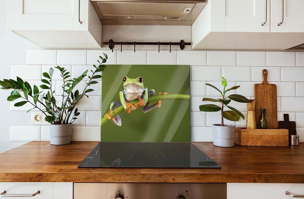 Baum-Frosch auf Bambus Herdabdeckplatte & Spritzschutz aus Echtglas | Für Herd-Kochfelder | 60x52 cm