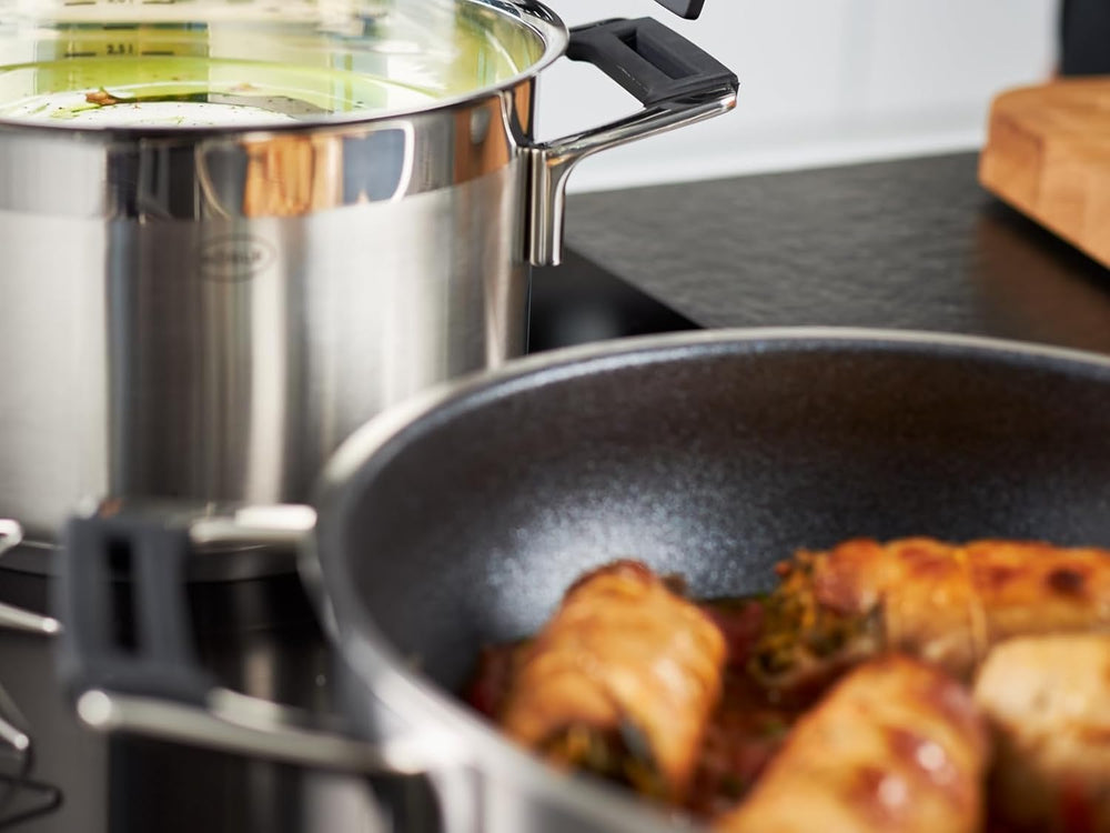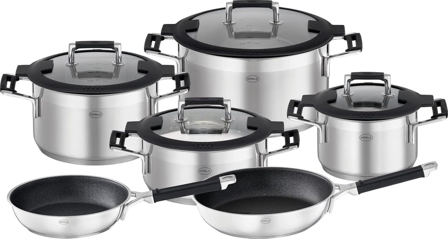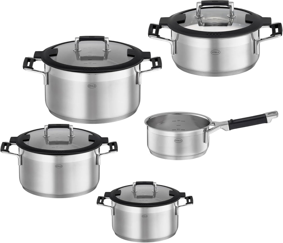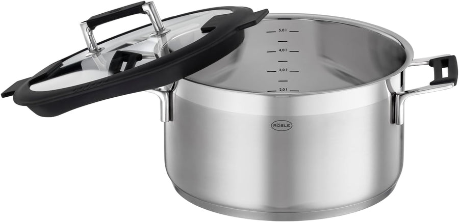 RÖSLE SILENCE PRO Topf-Set 5-tlg., Universaltopfset mit 3 Kochtöpfen, 1 Bratentopf und 1 Stielkasser