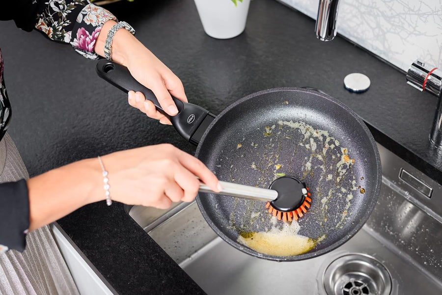 RÖSLE Spülbürste antibakteriell, Hochwertige Küchenbürste mit Wechselkopf, Edelstahl 18/10, strapazi