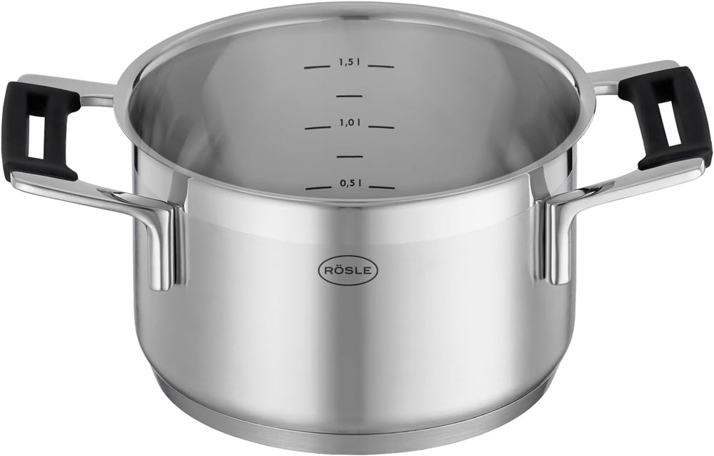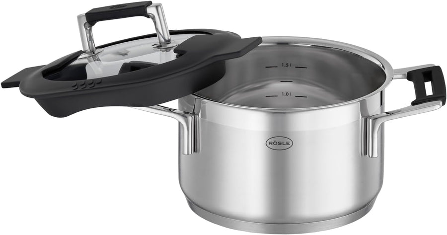 RÖSLE SILENCE PRO Kochtopf, Hochwertiger Universaltopf aus Edelstahl 18/10, 16 cm, Glasdeckel, Innen