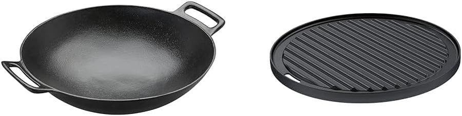 RÖSLE VARIO Wok, Hochwertiger Wok aus emailliertem Gusseisen zum scharfen Anbraten & VARIO Grillplat