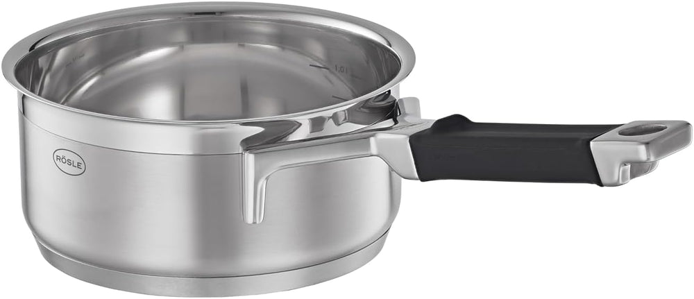 RÖSLE SILENCE PRO Stielkasserolle, Hochwertiger Universaltopf aus Edelstahl 18/10, 16 cm, Silikongri