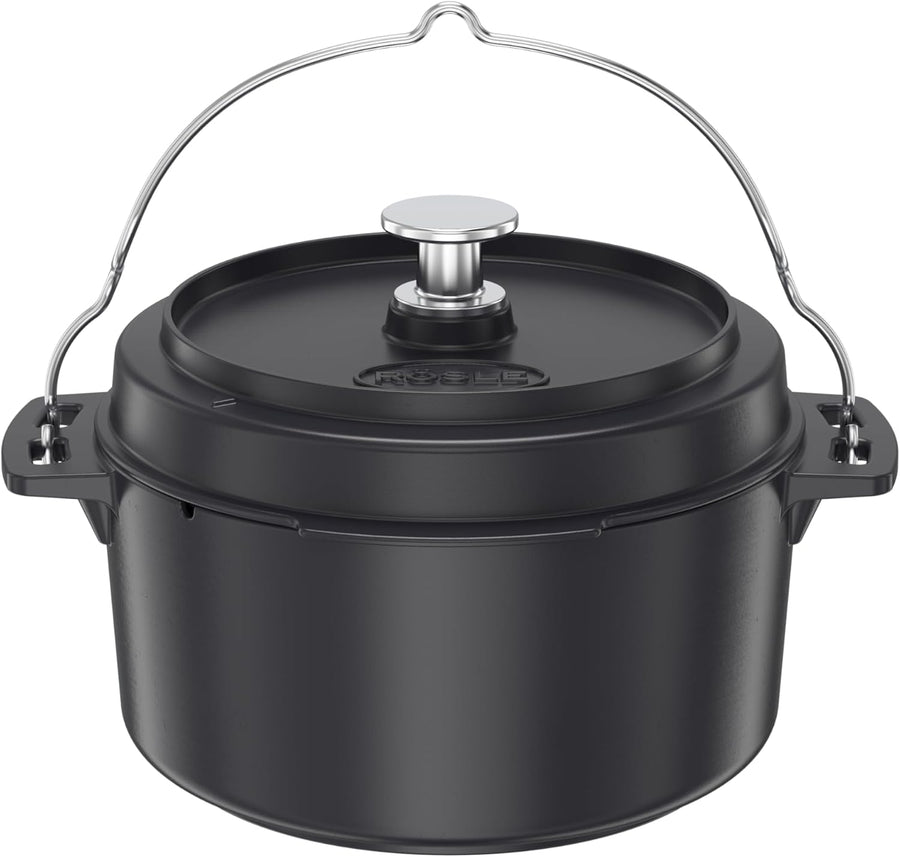 RÖSLE VARIO Dutch Oven, Hochwertiger Dutch Oven aus emailliertem Gusseisen, Deckel als Pfanne einset