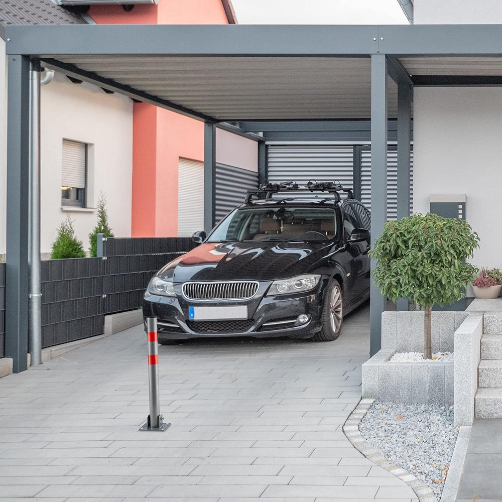 Relaxdays 2 x Absperrpfosten eckig, Parkplatzsperre klappbar, Parkpfosten mit Warnstreifen, 3 Schlüs