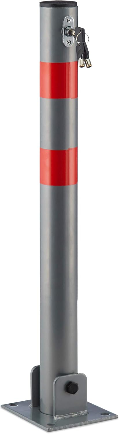 Relaxdays 2 x Absperrpfosten rund, Parkplatzsperre klappbar, Parkpfosten mit Warnstreifen, 3 Schlüss