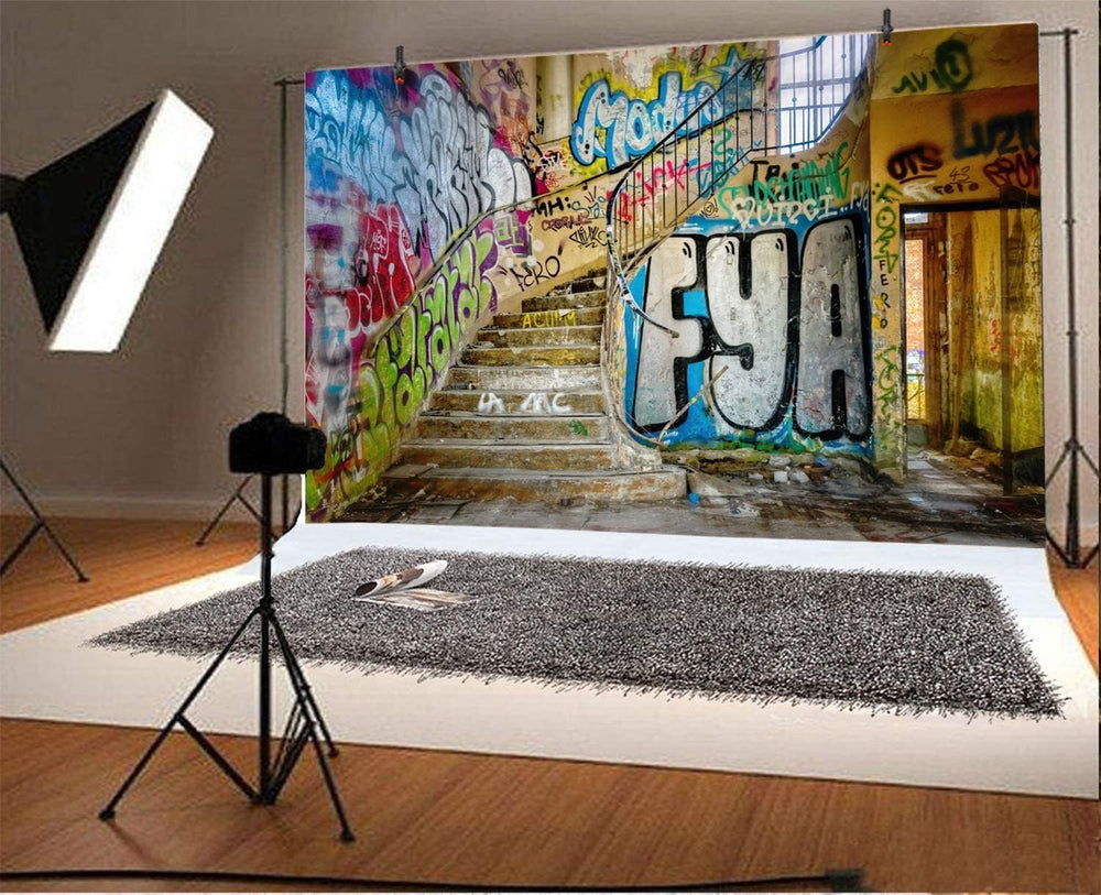 Renaiss 2.7x1.8m Urban Street Graffiti Wand Fotografie Hintergrund Retro Verlassene Schulgebäude Fot