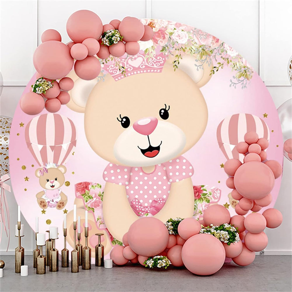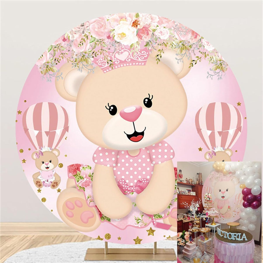 Renaiss 2m Prinzessin Bär Baby Dusche Runde Kulisse Rosa Blume Heissluftballon Polyester Fotografie