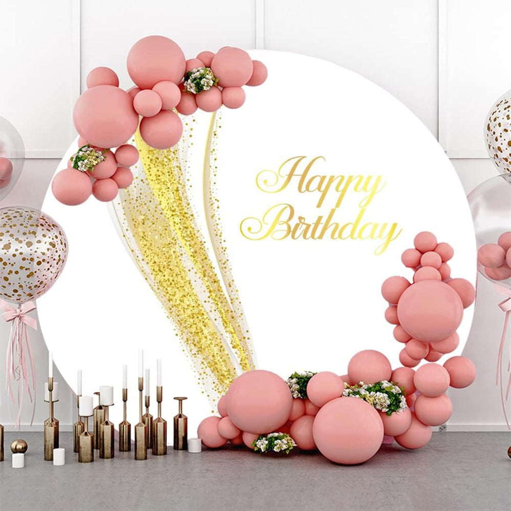 Renaiss 2m Happy Birthday Runde Kulisse Weiss Gold Glitter Fotografie Hintergrund Kinder Erwachsene