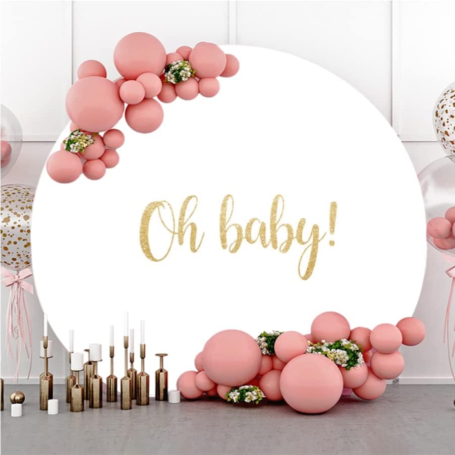 Renaiss 2m Oh Baby Runder Kulisse Abdeckung Gold Weiss Polyester Fotografie Hintergrund Baby Dusche