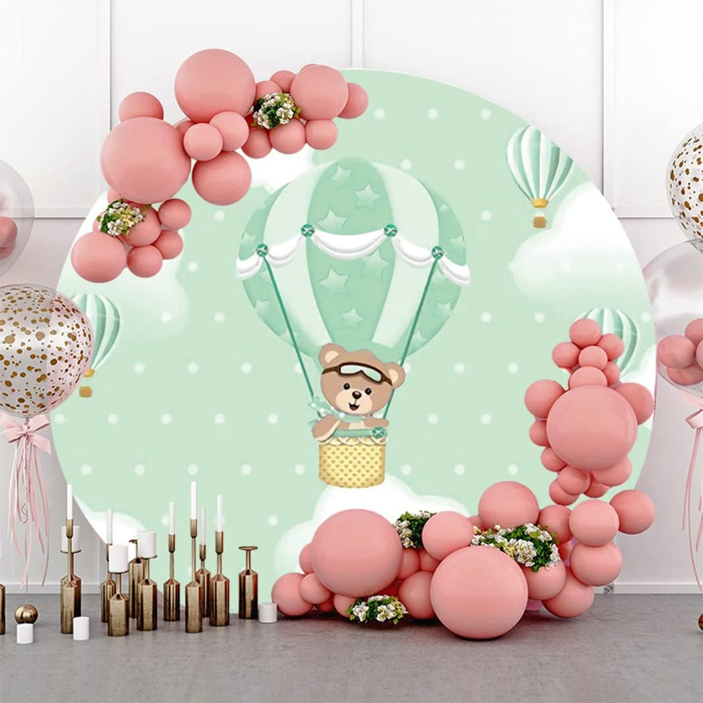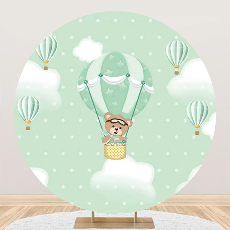 Renaiss 2m Bär Baby Dusche Runde Kulisse Himmel Wolken Grün Heissluftballon Polyester Fotografie Hin