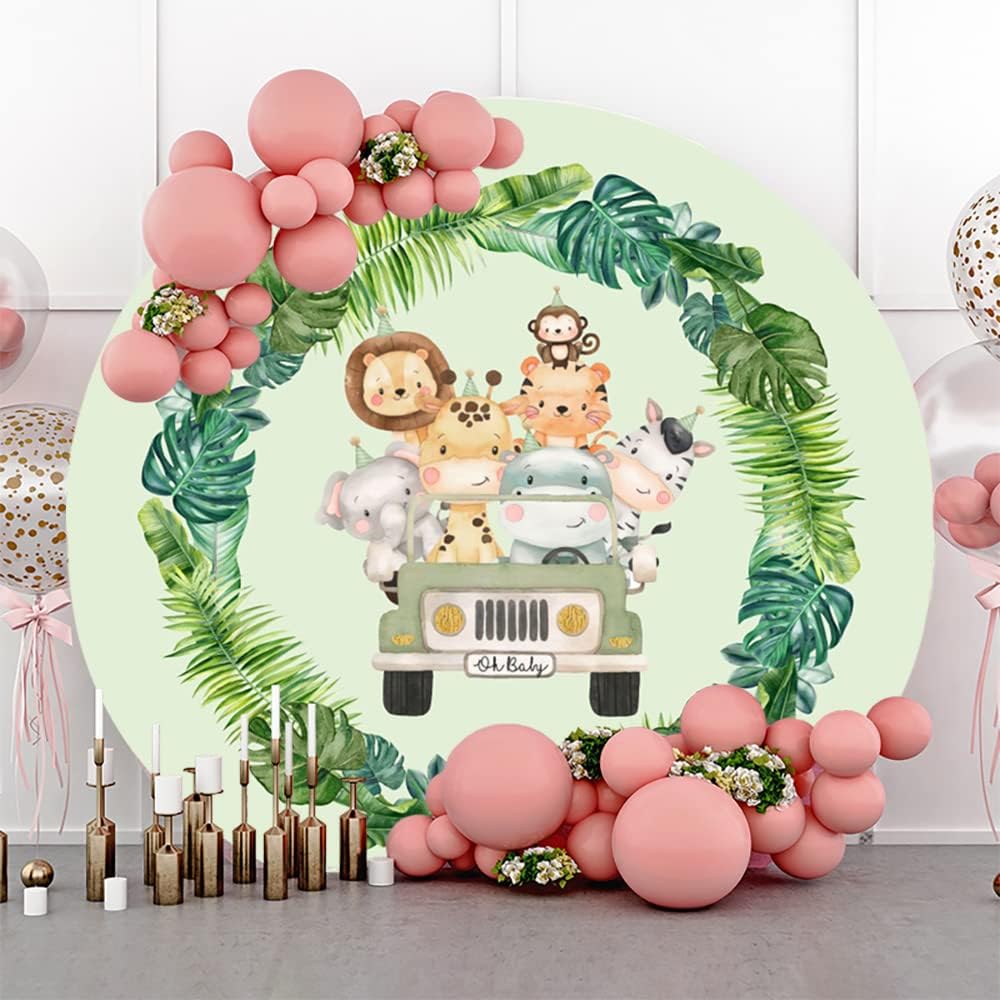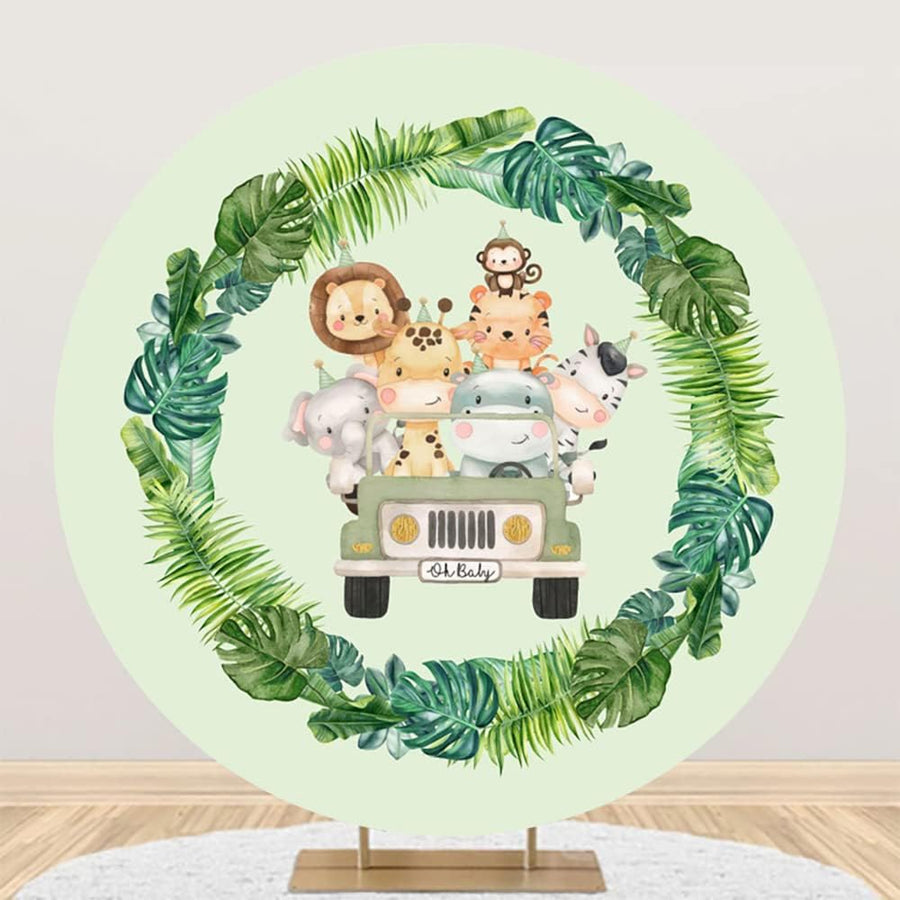 Renaiss 2m Dschungel-Safari-Tiere Runde Kulisse Grünes Auto Luftballons Blätter Baby Dusche Fotograf
