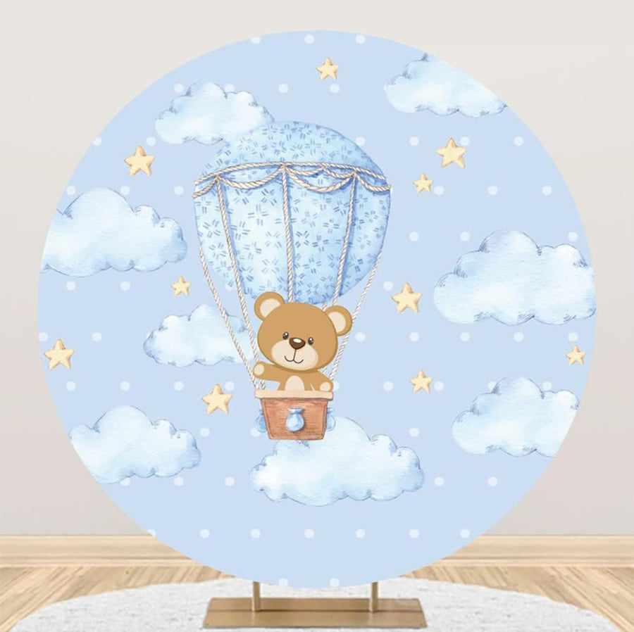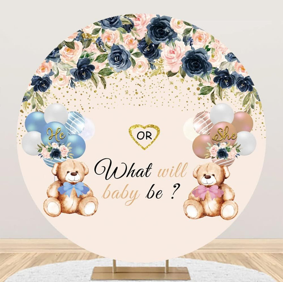 Renaiss 2m Baby Dusche Rundes Hintergrund Bear Flower Gender Reveal Fotografie Hintergrund Junge ode