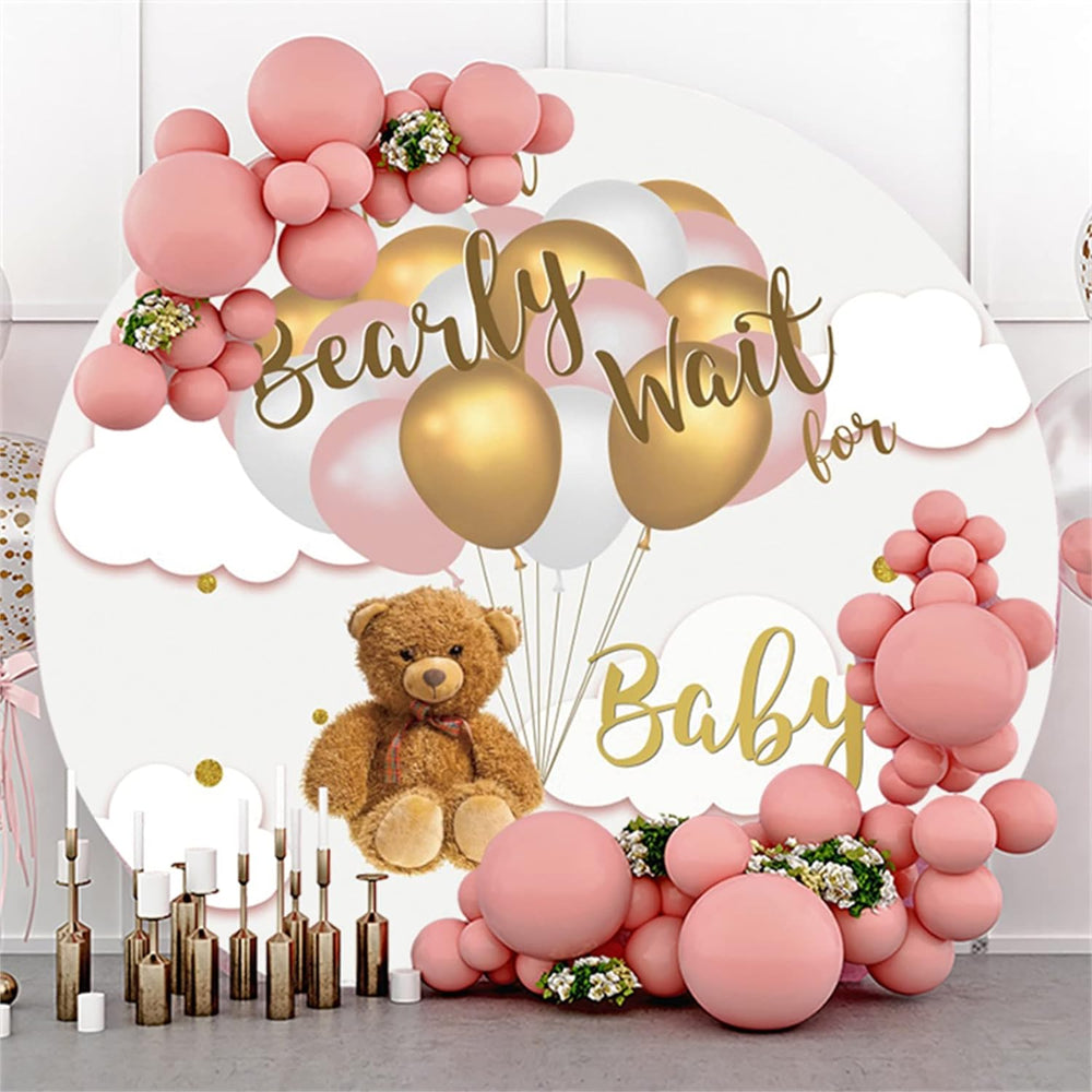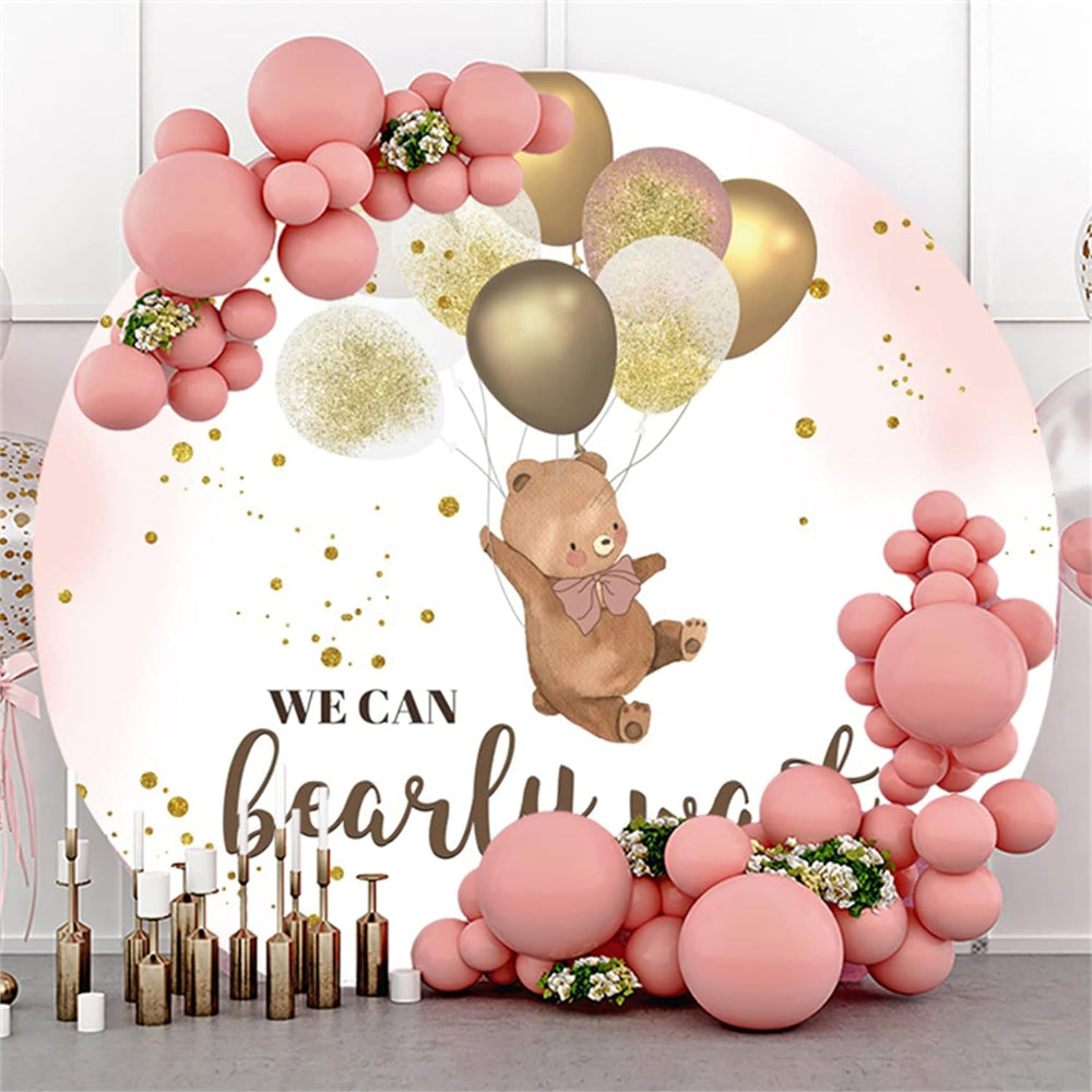 Renaiss 2m Bear Balloons Runder Kulisse We Can Bearly Wait Polyester Fotografie Hintergrund Baby Dus