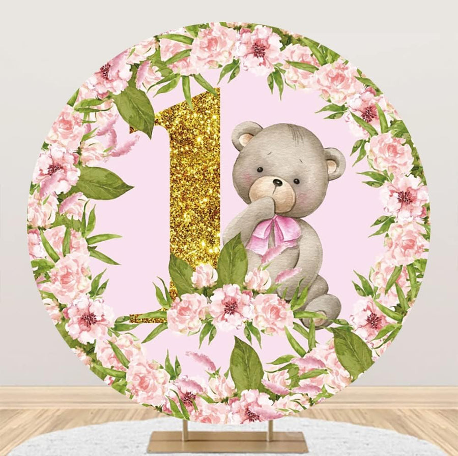 Renaiss 2m Bär Blume Runde Kulisse Mädchen 1. Geburtstag Party Polyester Fotografie Hintergrund Baby