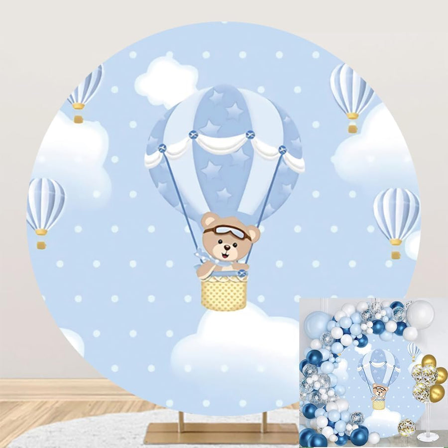 Renaiss 2m Heissluftballon Bär Runde Kulisse Blauer Himmel Wolken Baby Dusche Polyester Fotografie H