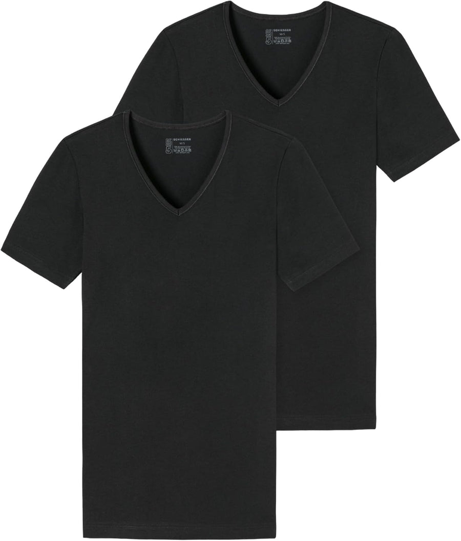 Schiesser Herren 2 PACK Unterhemd V-Ausschnitt mit Arm Bio Baumwolle - 95/5 Organic S Schwarz_173982