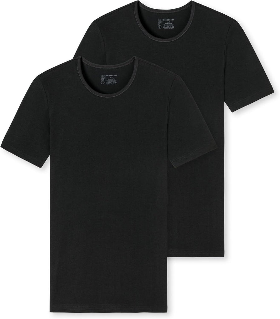 Schiesser Herren 2 PACK Unterhemd Rundhals mit Arm Bio Baumwolle - 95/5 Organic M Schwarz_174997, M