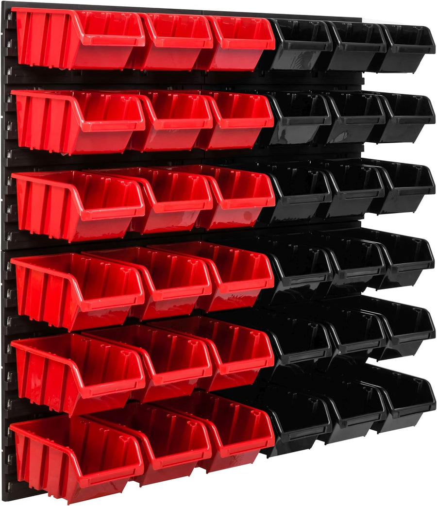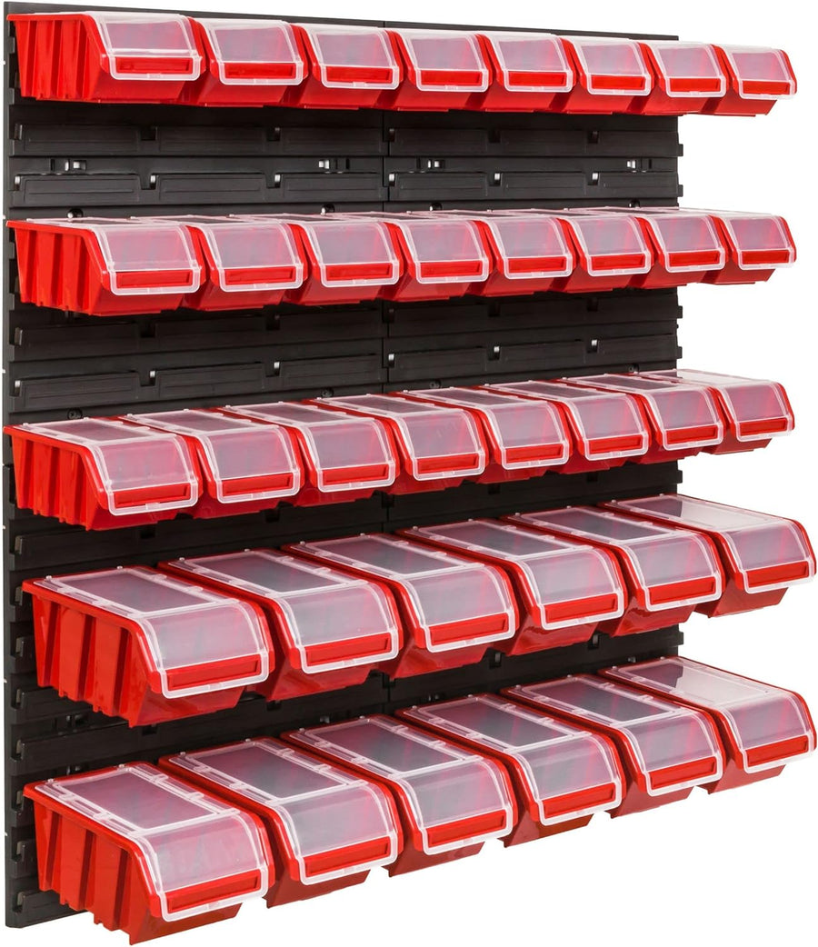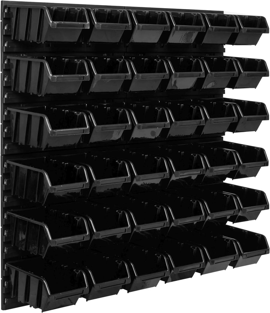 Lagersystem Werkstattregal | 78 x78 cm | 36 stck. Box | Wandregal mit Werkzeughalterungen und Stapel