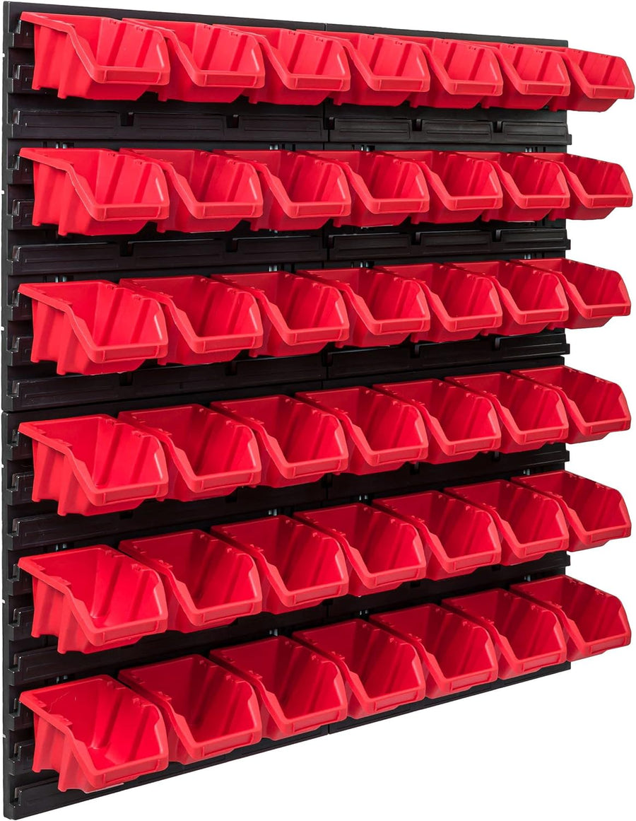 Lagersystem Werkstattregal | 78 x 78 cm | 47 stck. Box | Wandregal mit Stapelboxen - Wandplatten Ext