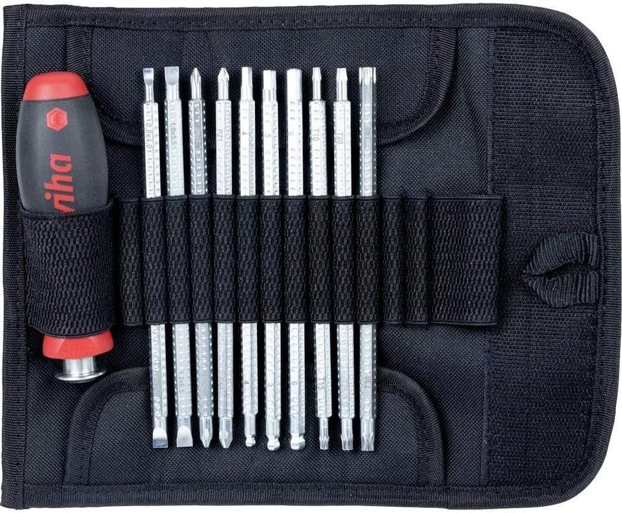 Wiha Schraubendreher mit Wechselklinge Kombiklingen-Satz SYSTEM 4 in Rolltasche (27820) / 12 teilig,