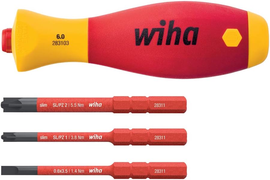 Wiha Schraubendreher mit Bit Magazin LiftUp Electric Schlitz I Phillips mit 6 slimBits I 1000V Siche